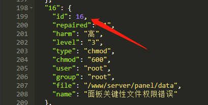 2.查找字符串: ”id”: 16,将这段修复权限的代码删除